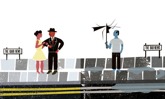The false prophet brings good news and is told by the real prophet that authentic prophets only bring bad news. Moreover, because he’s told lies in God’s name, he will die. And he does die.