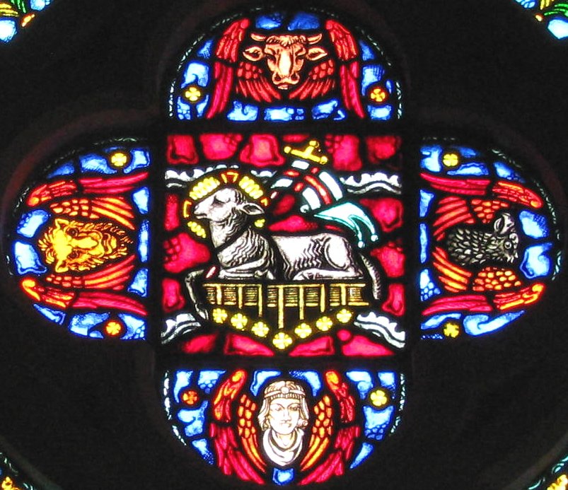 This is a great vision of the creator God. The imagery comes mainly from the book of Ezekiel but used for the author’s own purpose of depicting God as simultaneously distant and domestic. The colours, the thunder and lightning, the transparent floor are all distancing devices, whereas the living creatures, however strange, are like domestic animals in God’s household and the seven lamps are like furniture. The creatures stand for all living beings equipped to know their creator (hence the eyes) and to worship him. The lamps stand for the attendant spirits of God’s presence but are also related to the seven churches of Asia, to which the Revelation is addressed.