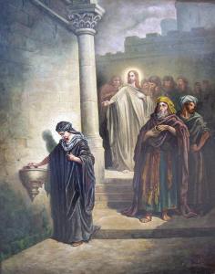 The difference between the decent teaching of the author of Timothy and the more radical teaching of Jesus is seen here. He sees that the larger sums donated by rich people are “out of their abundance”, whereas the widow has given her whole livelihood (literally her “whole life”). The danger of conventional decency, with its honours, is shown by Jesus in his criticism of the religious leaders who enjoy the honour more than commandments of God. Sometimes the demand of Jesus for radical commitment may seem over the top in comparison with a more settled faith; but the radicalism that grasps the heart protects believers from hypocrisy. The poor person, who seeks no honour but gives her all, is honoured by Jesus.