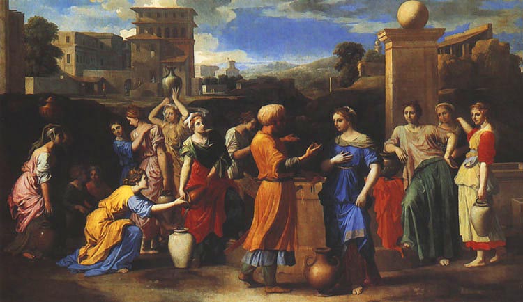 This is a beautiful story written in a style that suits the culture it depicts, emphasising human dignity and the faithfulness of God in events which are not dramatic but very important to Abraham, who has left his own land at the bidding of God, and now needs to find a wife for his son Isaac. Two possibilities are ruled out by Abraham’s faithfulness to God’s command: Isaac cannot take a wife from amongst the Canaanites; nor can he return to live in his family’s old lands. The motif of the man waiting by the well where women draw water is a lovely image of courtship which is used again in the Old Testament and also in the New, in the story of Jesus and the woman at the well. The woman who offers water to the man is symbolically offering hospitality and new life to the traveller. The traveller on his side offers respect to the woman and appreciation of her qualities, which in Rebekah’s case include a kindly and generous nature. Without any outward miracle the purposes of God are fulfilled through the adventurous goodness of human beings. Sometimes the life of faith is blessed by events like this.