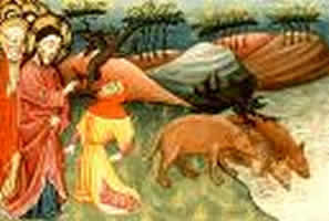 I’ve suggested that Luke’s version is less raw than Mark’s, but the dream-story of the storm followed by the story of the demon-possessed man is a powerful and disturbing construct, hinting at the violent opposition of the powers of evil to God’s goodness in Jesus and their threat to the health of the human being. In both instances the authority of Jesus is decisive in creating a calm in which fearful people can continue as, or choose to become, his disciples.