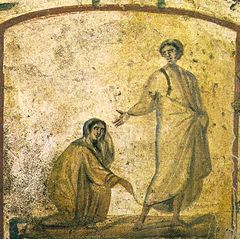 In this passage Luke follows his main source Mark very closely, especially in the cunning with which one story, that of the haemorrhaging woman, is nested within the other, that of the dying child. There is a subterranean connection between the two: both are women, the elder has a problem which is connected with her fertility; the other, on the cusp of fertility is dying. The story focuses on the taboo area of female fertility and the threats to it, which are also threats to the lives of human beings who happen to be women. Jesus’ authority to defeat the sources of chaos and death (evident in the two preceding stories, the storm on the lake and the demon-possessed Gersasene) is depicted here as restoring the springs of life in two women by treating them as people and not as beings isolated by their social role.