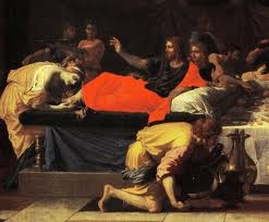 One of the Pharisees invited Jesus to a meal. When he arrived at the Pharisee’s house and took his place at table, a woman came in, who had a bad name in the town. She had heard he was dining with the Pharisee and had brought with her an alabaster jar of ointment. She waited behind him at his feet, weeping, and her tears fell on his feet, and she wiped them away with her hair; then she covered his feet with kisses and anointed them with the ointment.