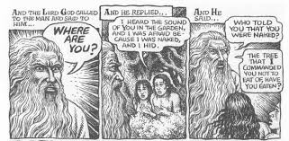 It first of all offers the reader the thrill of a bit of divine detective work. Adam hides and then excuses his behaviour by pleading embarrassment at his nakedness, forgetting that until he ate the fruit he didn’t know he was naked. But God doesn’t forget, he spots the lie, and asks the devastating question, “Who told you that you are naked?”