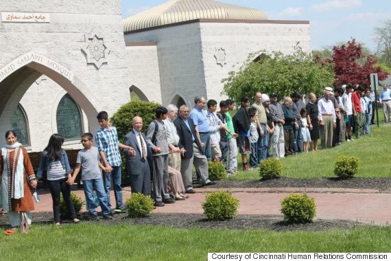 CHRISTAINS, JEWS AND MOSLEMS JOIN HANDS TO PROTECT A MOSQUE IN CINCINATTI.